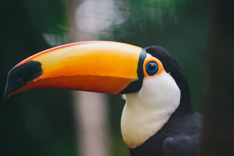Son impressionnant bec orange n’est pas qu’un atout esthétique ! Grâce à sa légèreté et sa sensibilité, le toucan peut attraper des fruits au bout des branches les plus fines, inaccessibles à d’autres oiseaux. C’est aussi une arme dissuasive contre les curieux un peu trop proches.